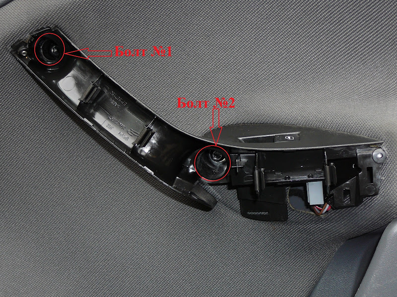 1.Знімаємо накладку ручки. Вставляємо щось плоске між накладкою і самою ручкою і тягнемо накладку до себе.Вона кріпитися до ручки на зажимах. Відкручуєм два болти, які притискають ручку до дверей.